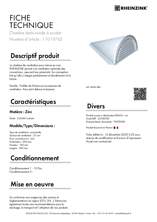 Rechercher sur notre site Type de résultat Général (119) Actualités (19) informations d'identification (9) Télécharger (310) chercher previous89101112next Cuvette rectangle sortie Ø100 mm réf. 11008154 …Fiche technique de la cuvette rectangulaire RHEINZINK 11008154 pour l'évacuation des eaux pluviales en zinc pdf 147 Ko Cuvette rectangle sortie Ø120 mm réf. 11008156 …Fiche technique de la cuvette rectangulaire RHEINZINK 11008156 pour l'évacuation des eaux pluviales en zinc pdf 147 Ko Patte d'oie pour couvre-joint 100 mm - 11010634 Fiche technique de la patte d'oie pour couvre-joint 100 mm en zinc CLASSIC naturel- 11010634 pdf 99 Ko Embout gauche 250B14 à talon réf. 11008798 …Fiche technique de l'embout à talon RHEINZINK 11008798 pour l'évacuation des eaux pluviales en zinc pdf 138 Ko Embout gauche 333B14 à talon réf. 11008799 …Fiche technique de l'embout à talon RHEINZINK 11008799 pour l'évacuation des eaux pluviales en zinc pdf 138 Ko 11010762_fichetechnique.pdf … chatière de ventilation pour toiture en zinc RHEINZINK permet une ventilation optimale des couvertures,… pdf 103 Ko Cuvette rectangle sortie Ø80 mm réf. 11008152 …Fiche technique de la cuvette rectangulaire en zinc RHEINZINK-CLASSIC naturel 11008152 pour l'évacuation des eaux… pdf 147 Ko Embout droit 250B14 à talon réf. 11008802 …Fiche technique de l'embout à talon RHEINZINK 11008802 pour l'évacuation des eaux pluviales en zinc pdf 137 Ko Embout droit 333B14 à talon réf. 11008803 …Fiche technique de l'embout à talon RHEINZINK 11008803 pour l'évacuation des eaux pluviales en zinc pdf 137 Ko 11010584_fichetechnique.pdf … x Descriptif produit Le couvre-joint RHEINZINK est un accessoire de finition destiné aux… pdf 121 Ko previous89101112next