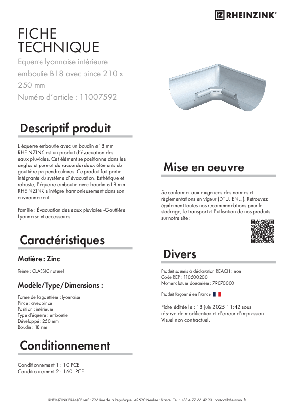 Fiche de déclaration environnementale et sanitaire du produit en conformité avec la norme NF EN 15804+A2 et son complément national NF EN 15804+A2/ CN