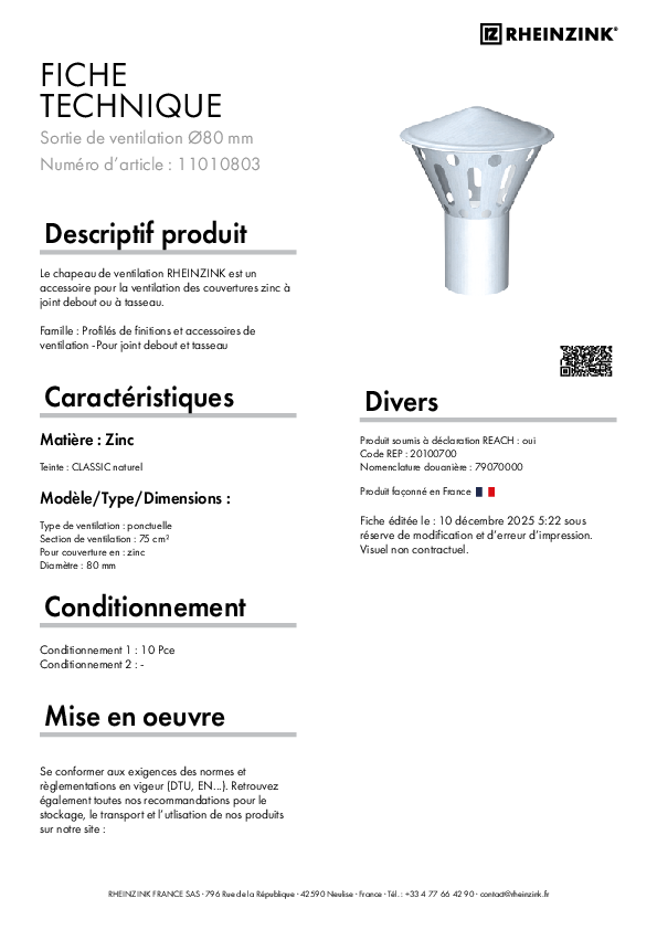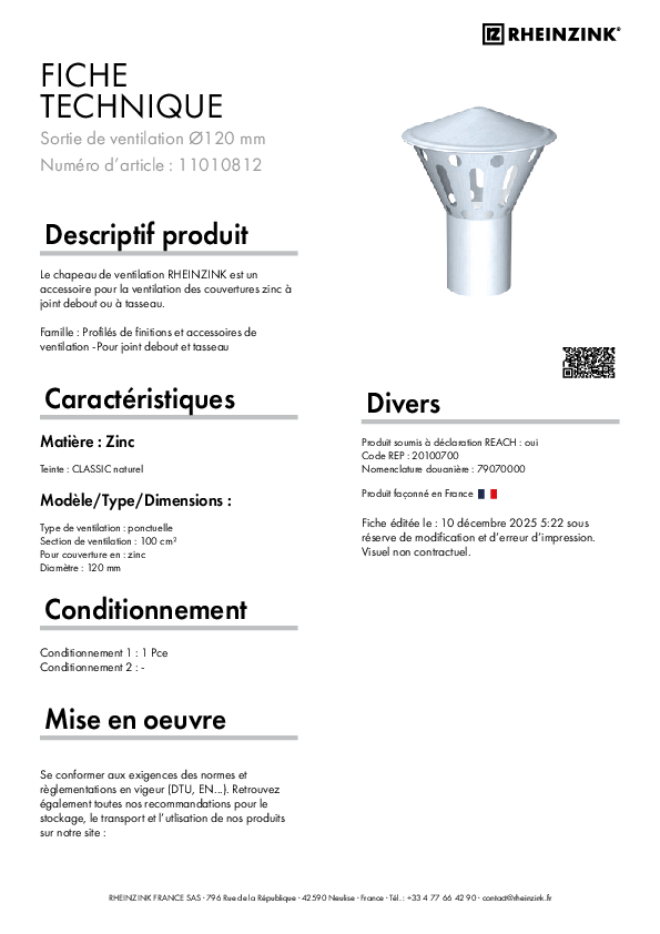 Rechercher sur notre site Type de résultat Général (119) Actualités (19) informations d'identification (9) Télécharger (310) chercher previous56789next RHEINZINK-GRANUM L'élégance pure à la perfection pdf 392 Ko Faîtage ventilé monopente contre mur Notice de pose pdf 338 Ko Bande d'égout ventilé Notice de pose pdf 371 Ko Abonnement à la newsletter …S'abonner à la newsletter RHEINZINK Pourquoi s'abonner ? Vous recevez une fois par mois une newsletter pour… Détails architecturaux - Inspirations et idées en zinc … de détails architecturaux avec du zinc RHEINZINK. Les exemples présentés vous inspirent ?… REACH-Nachweis für Produkte und deren chemische Inhaltsstoffe … REACH-VERORDNUNG EG/1907/2006 FÜR ALLE BEI RHEINZINK BEZOGENEN PRODUKTE 1. Unterliegen die von… pdf 259 Ko 11010803_fichetechnique.pdf … produit Le chapeau de ventilation RHEINZINK est un accessoire pour la ventilation des… pdf 100 Ko 11010807_fichetechnique.pdf … produit Le chapeau de ventilation RHEINZINK est un accessoire pour la ventilation des… pdf 100 Ko 11010812_fichetechnique.pdf … produit Le chapeau de ventilation RHEINZINK est un accessoire pour la ventilation des… pdf 100 Ko 11010291_fichetechnique.pdf … Descriptif produit La bande de battellement RHEINZINK est un accessorie de finition pour la couverrture.… pdf 120 Ko previous56789next